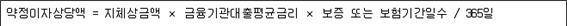 ② 제1항에 의하여 채권보전 조치를 할 경우 보증 또는 보험금액은 지체상금액에 지체상금의 120일 이상에 해당하는 약정이자상당액을 가산한 금액이어야 한다. 이때의 약정이자상당액은 아래와 같이 산정하고, 금융기관 대출평균금리는 납품대가 청구시점의 금융기관 대출평균금리(한국은행 통계월보상의 대출평균금리)를 말한다.